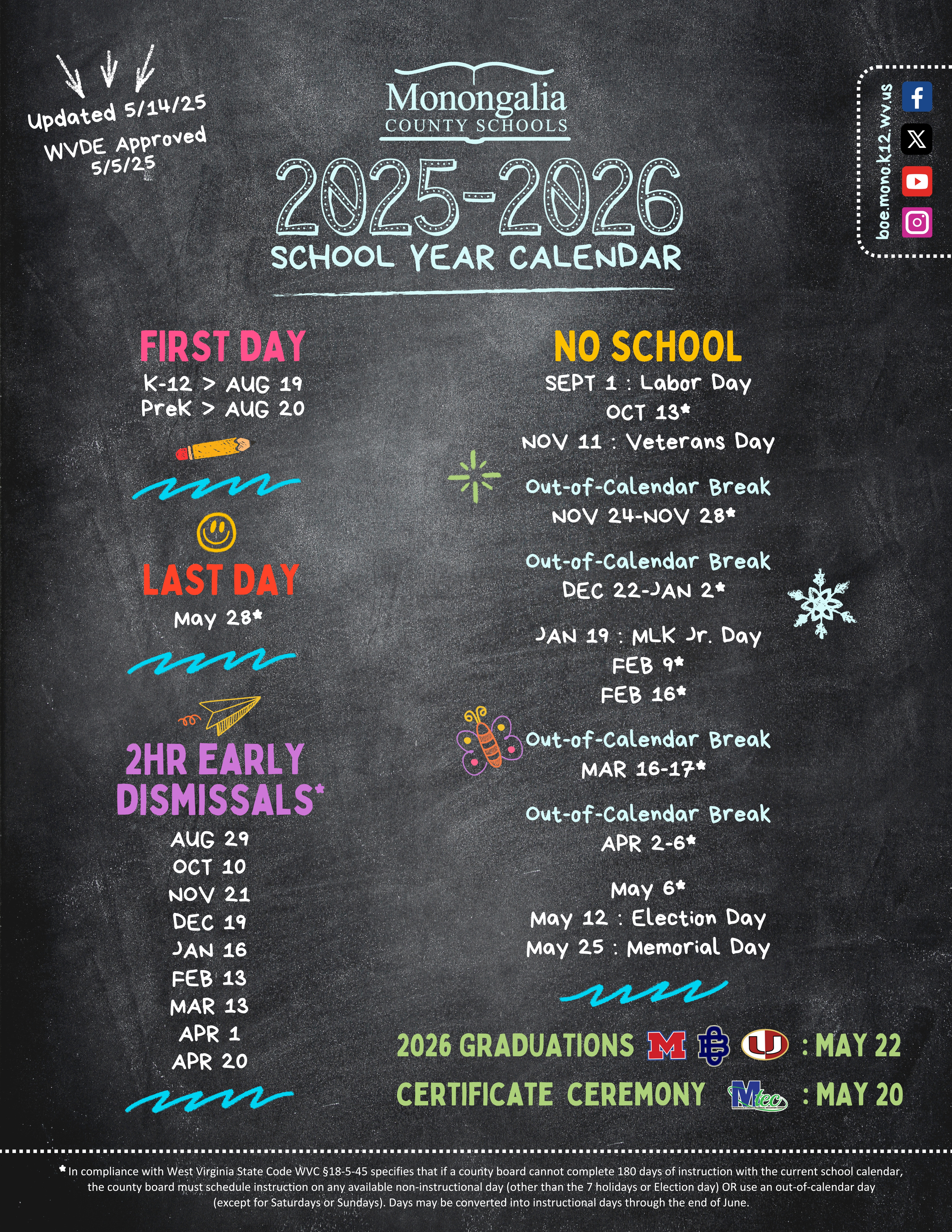 Monongalia County Schools Calendar 2025-2026